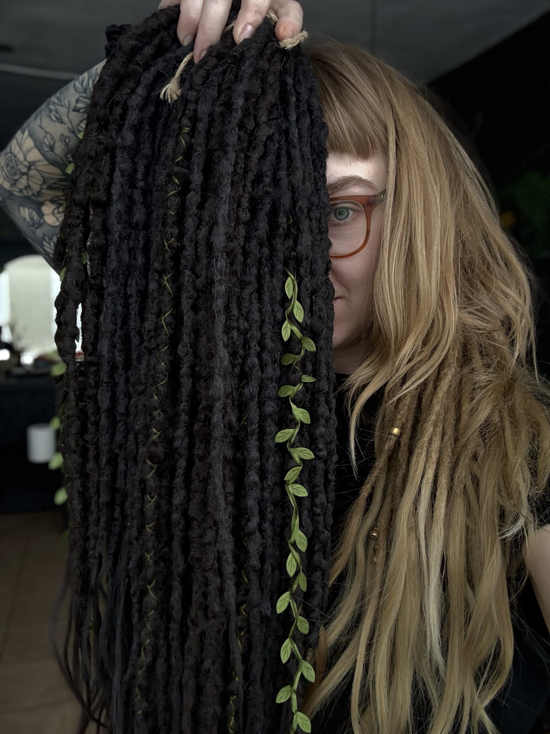 : 16 pojedynczych i 39 podwójnych dredloków (94 końcówki łącznie)
