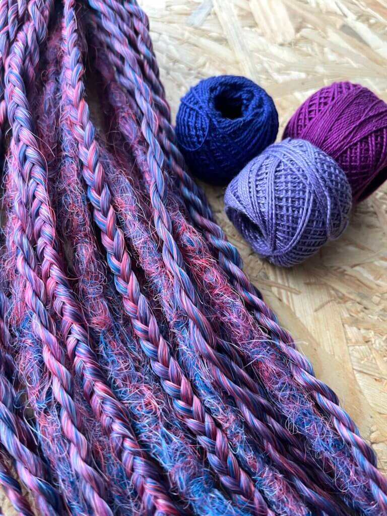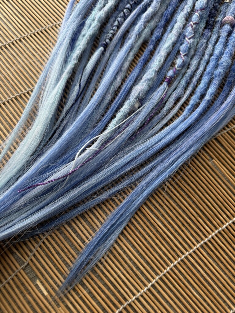 Najczęściej używa się wełny merino, ponieważ jest delikatna, sprężysta i komfortowa w kontakcie ze skórą. To ważne szczególnie wtedy, gdy dredloki mają być noszone przez kilka godzin lub dłużej. Wełna dobrze znosi ręczne formowanie i może występować w bardzo szerokiej palecie kolorów, dzięki czemu łatwo dopasować ją do stylu, kostiumu lub konkretnej stylizacji.